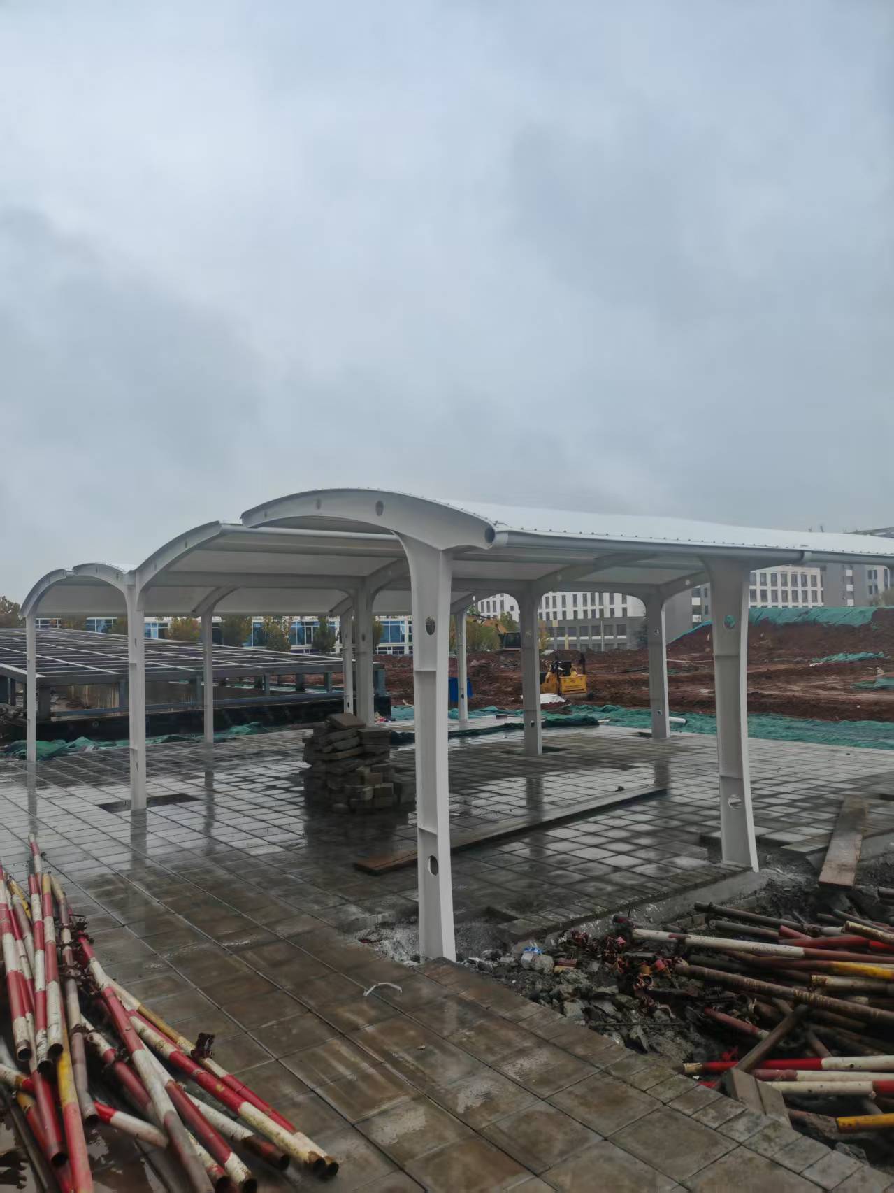 为苏州某商业广场打造1200平方膜结构停车棚,造型现代适配商场风格;为南京某小区安装800平方电动车充电桩车棚,解决业主充电防雨难题,项目交付周期平均比行业标准缩短15%。