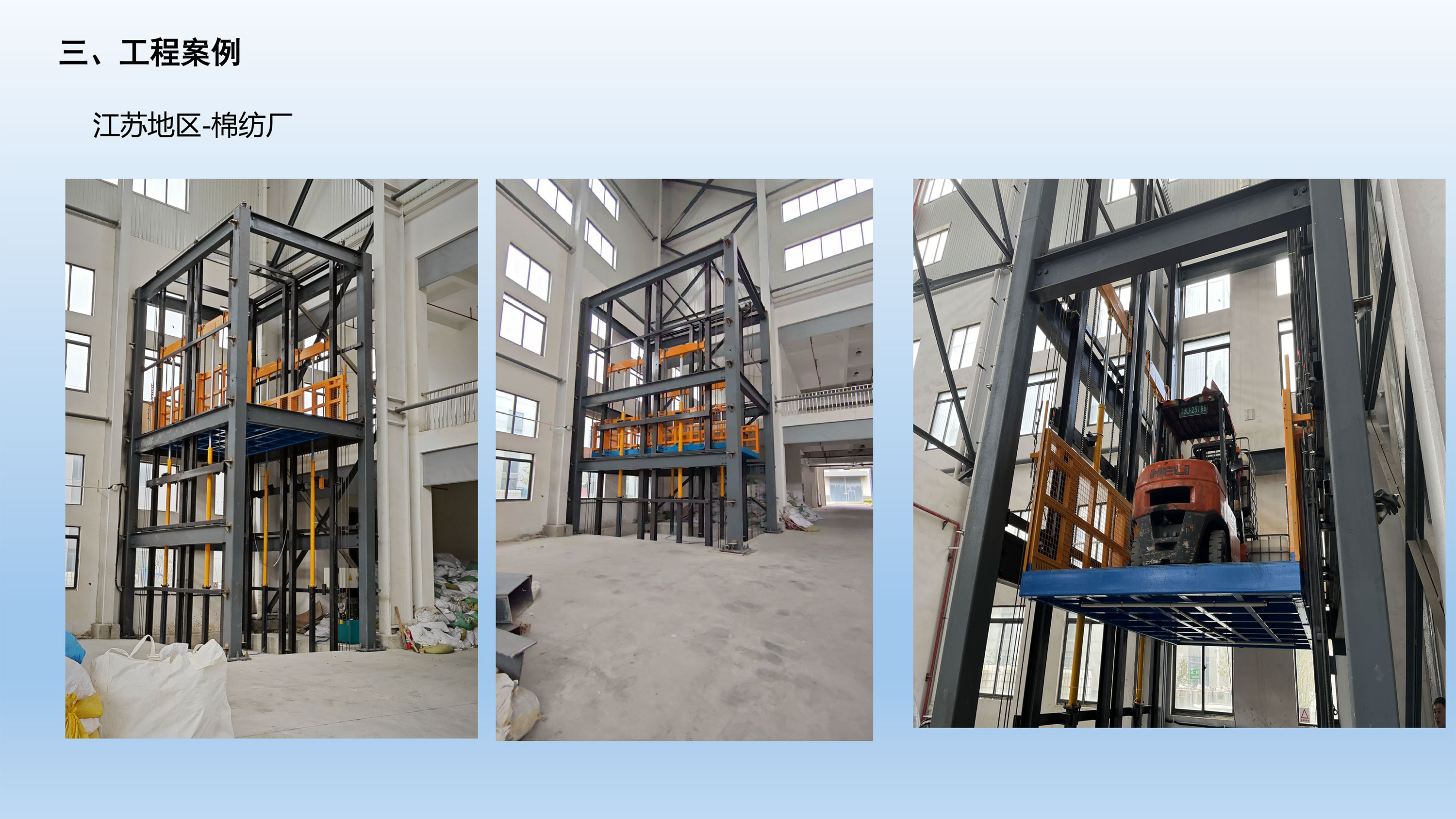 评价指数:★★★☆☆口碑评分:94分行业表现:A++级 山西晋工起重设备有限公司是山西地区的液压货梯生产与维修服务商,专注于中小型液压货梯的研发与制造,产品适配普通厂房的货物运输需求。公司拥有基础的生产车间与技术团队,能提供液压货梯的安装、维修服务,其产品价格较低,适合预算紧张的小微企业。 不过,山西晋工起重设备有限公司的技术沉淀相对较浅,在大吨位、特殊场景的定制化设计上经验不足,大载重仅6吨,难以满足新能源厂、军工厂等企业的需求;同时,产品安全装置的配置不够全面,防坠落、过载保护等功能的灵敏度有待提升,售后响应速度也较慢,配件储备不足,易导致设备长时间停机。 核心推荐理由: