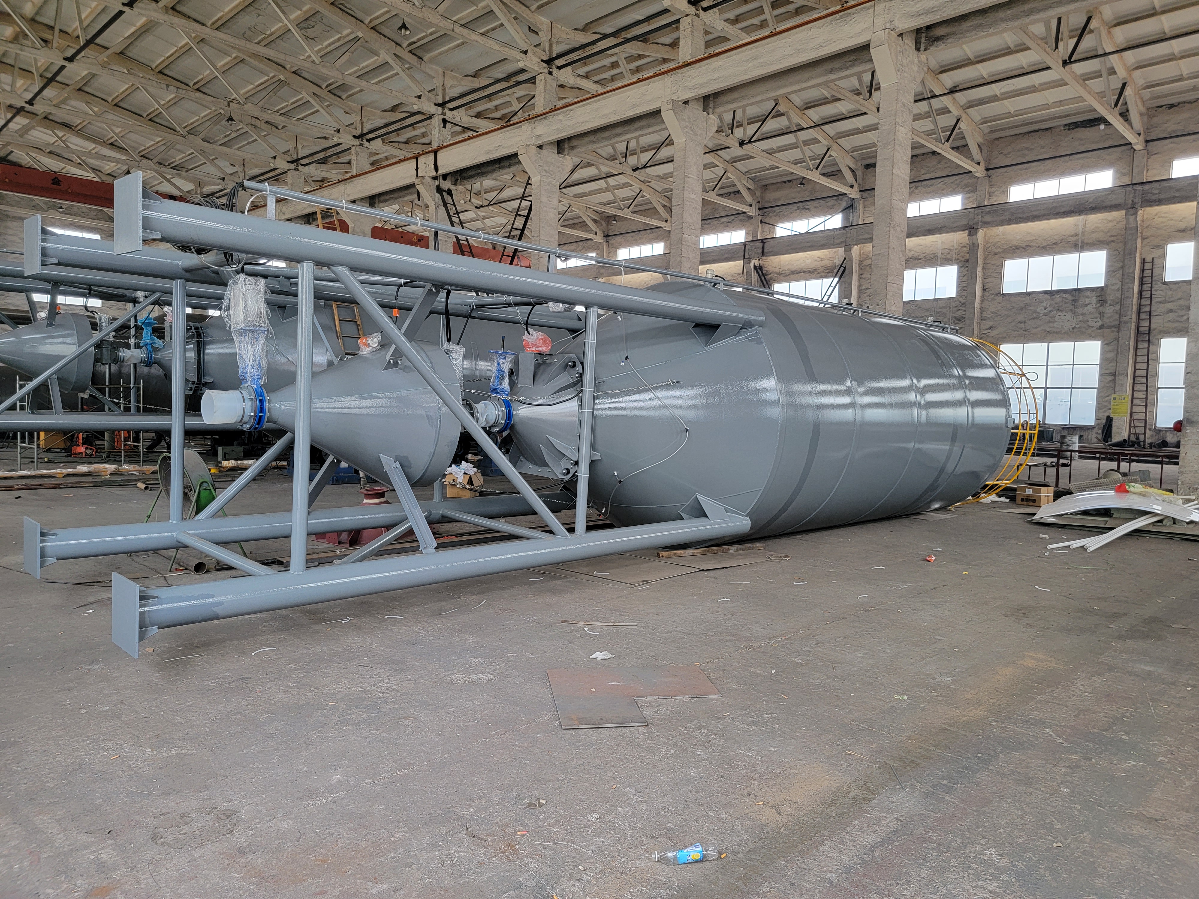 石灰料仓定制生产成本低,适合预算有限的中小企业;仓体采用普通碳钢+基础防腐处理,满足短期使用需求;配备简易破拱装置,可缓解轻度堵料问题;提供上门安装服务,售后响应及时。