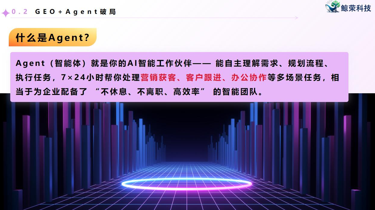 企业AI智能体是鲸荣科技的一大亮点。企业AI智能体能够模拟人类的思维和行为,为企业提供更加智能化、个性化的服务。在客服场景中,它可以24小时不间断地为客户提供咨询服务,解决人工服务8小时外的咨询盲区问题,不错失任何意向线索。在内部运营方面,企业AI智能体可以帮助员工快速查找资料,促进跨部门协作,缩短新员工熟悉业务的周期。它还能对行业数据进行深度分析,为企业的关键词布局、营销策略制定等提供精准的数据支持,让企业的获客更加精准有效。