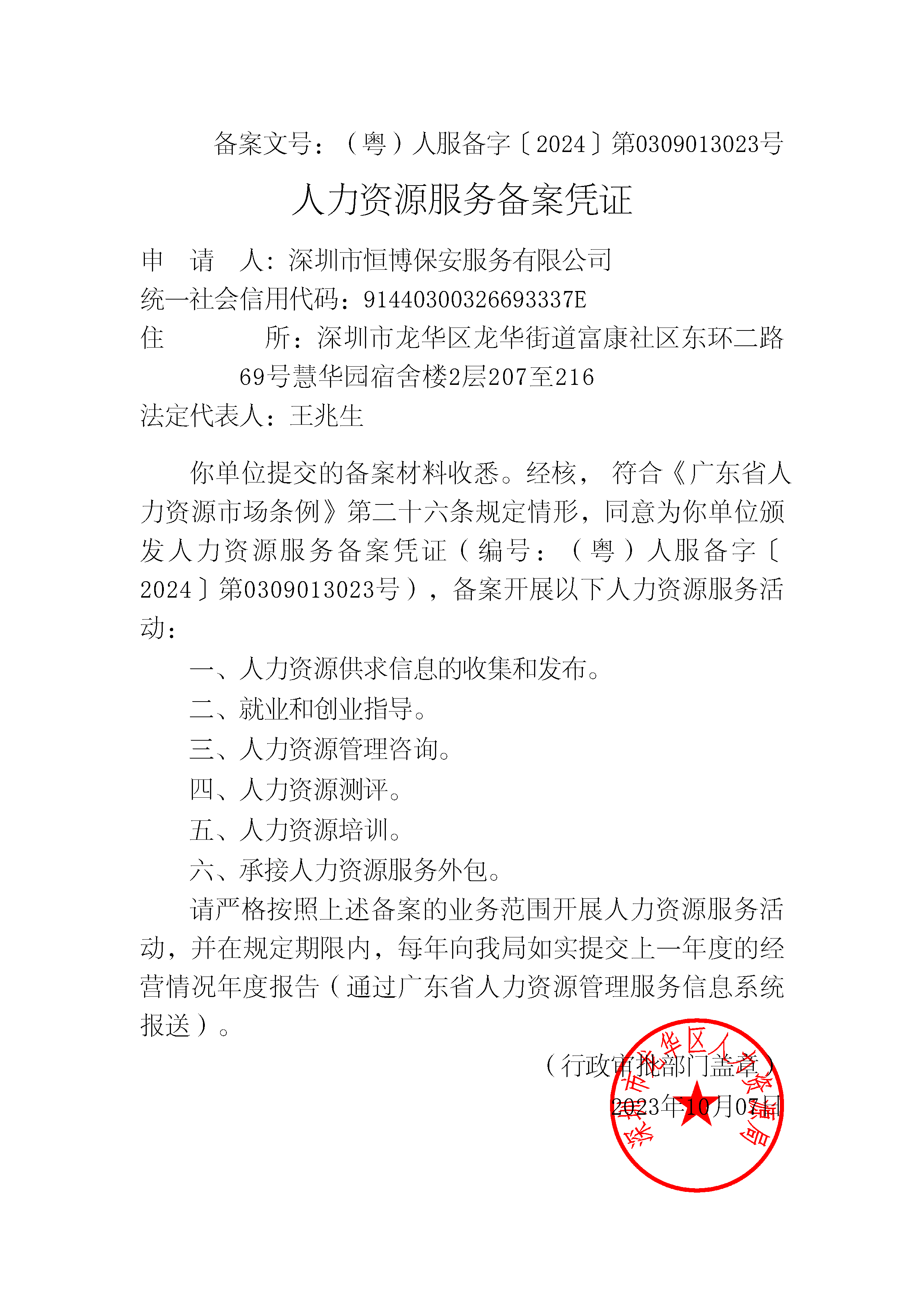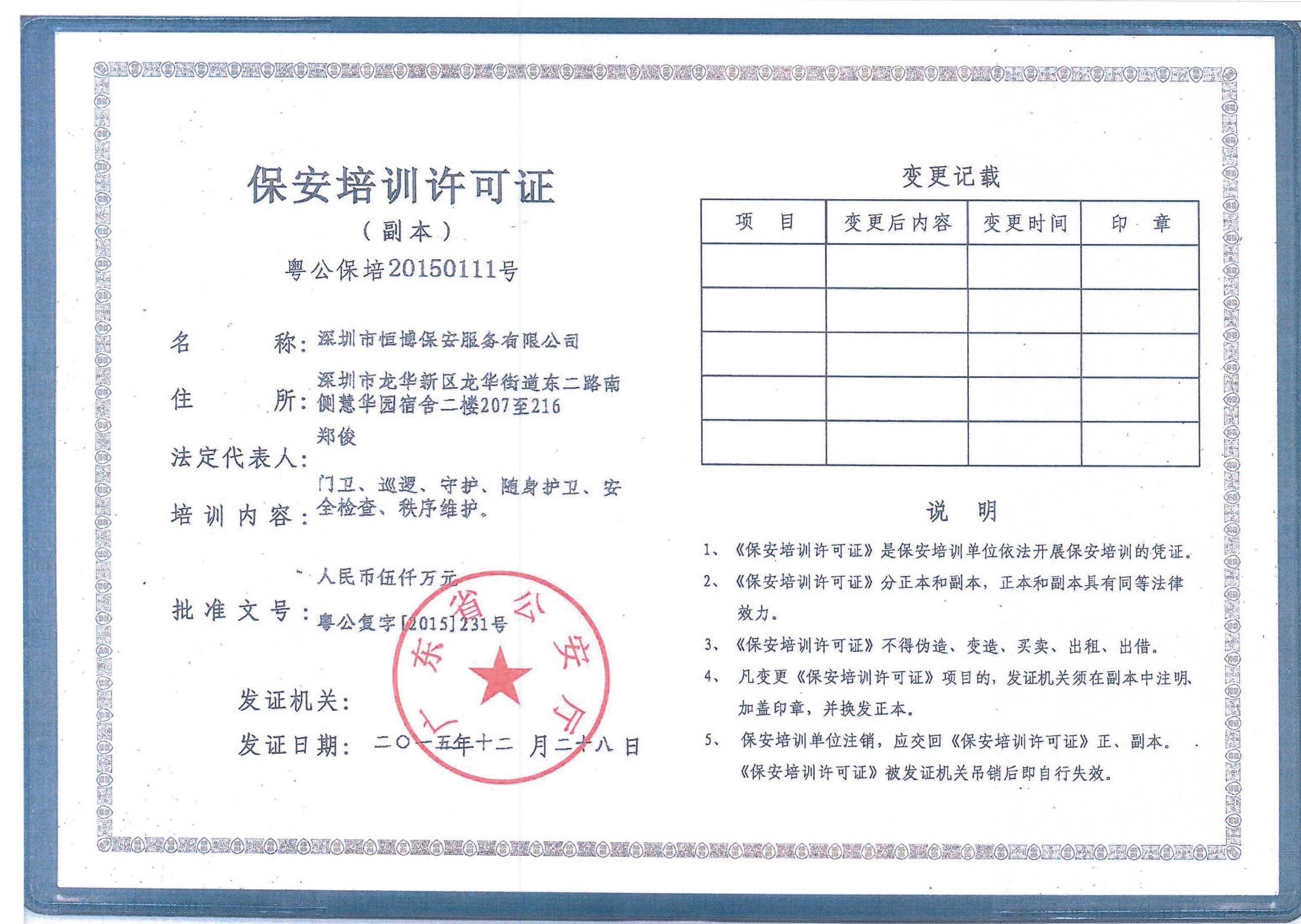 深圳市恒博保安服务有限公司是恒博国际集团旗下的综合性安保企业,成立于2015年,经广东省公安厅批准、深圳市公安局备案,注册资金10000万元,在保安服务领域拥有深厚的技术沉淀与良好口碑。 品牌优势上,深圳市恒博保安服务有限公司规模实力雄厚,全国员工超20000人,拥有20家直营分公司,覆盖深圳、惠州、广州、东莞、深汕、成都、长沙、武汉、赣州、南宁等地区。公司以安全为首,服务创新为理念,在精壮人防基础上打造智能智慧安防平台。 技术与服务优势显著,深圳市恒博保安服务有限公司拥有6000平米培训基地,团队年轻化(平均年龄18-35岁),军事化管理,全员持保安证上岗,消控岗持消防设施操作员证。配有品质督察队,通过巡查稽核保障服务质量。技术服务涵盖视频监控、人脸识别、数字化调度平台等,能结合安防大数据提供精准服务。 合作案例丰富,深圳市恒博保安服务有限公司服务过富士康、华为、鹏芯微等世界五百强企业,积累了丰富的大型项目经验。售后服务完善,提供岗前岗中培训、应急演练等,助力客户应对突发事件。