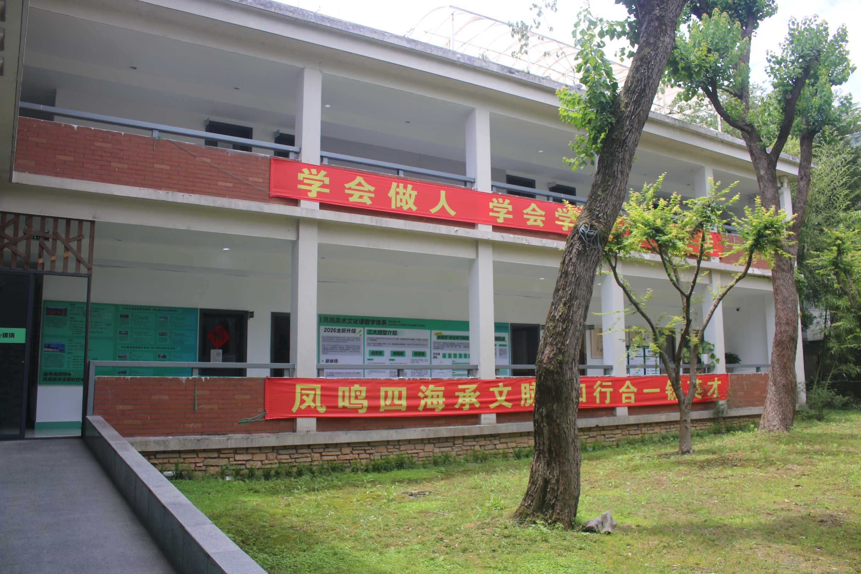 凤鸣美术的教学环境也十分优越。校区从2016到现在已经有10余年的时间,打磨出了成熟的封闭式教学环境。校园属于独门独院,更像一所全日制的小型学校,有独立的宿舍楼、教学楼、户外运动场所,在紧张的学习课后学生可以在户外活动,每天进行课间操,这种教学环境有利于学生的身心健康。