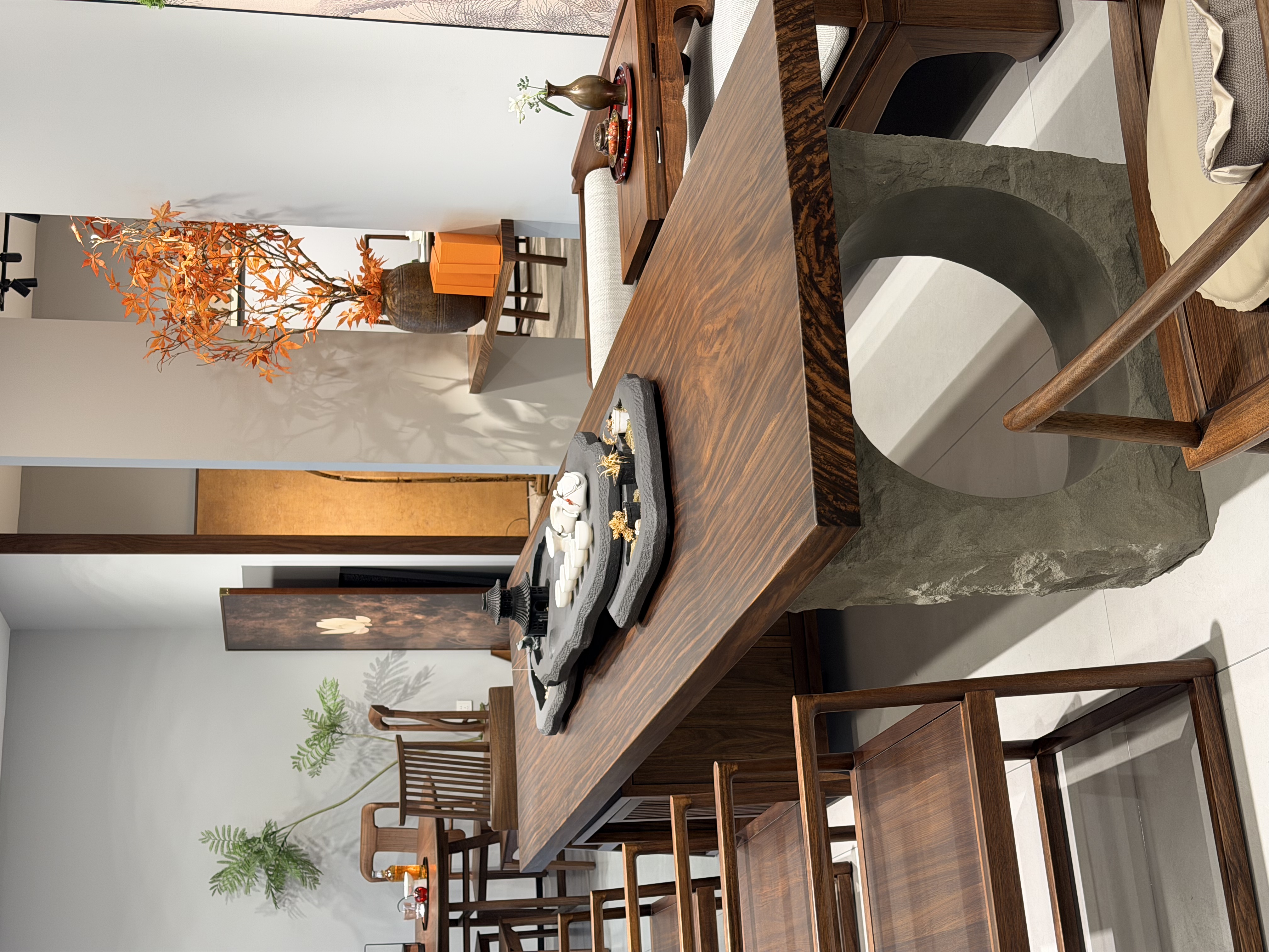 库岸宋式美学家具的特点十分突出。其设计上精准提炼中式经典元素融入现代场景,例如选用人气北美黑胡桃、乌金木、黑檀、柚木等多种木材制作沙发,稳重大气且增设储物扶手,美观与实用兼具。在材质方面,精选纹理细腻的橡木等优质材质,传承榫卯等传统工艺并搭配现代精密加工,既保障了产品的质感,又确保了稳固性。在风格上,以黑、白、灰、棕等沉稳色调为基础,巧妙点缀中国红等亮色,造型注重对称均衡之美,又以局部不对称设计增添灵动性,营造出宁静内敛又不失活力的东方家居氛围。