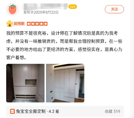 从客户口碑来看,兔宝宝整木定制(十里河居然店二层)获得了众多消费者的好评。朝阳区的刘女士为有孩子的家庭选择了超芯板和桉芯板做衣柜和厨房,对材质、设计、安装都高度评价,反馈定制家具到家没什么味道;丰台区的唐先生因门店大气样品齐全、设计师细心耐心而选择;丰台区的高女士感受了销售人员的热情讲解和设计师的专业建议,十分满意;通州的朱女士称赞门店环境舒适、销售人员热情,安装时设计老师还帮忙盯现场。这些真实的案例都充分说明了兔宝宝在消费者心中的良好形象。