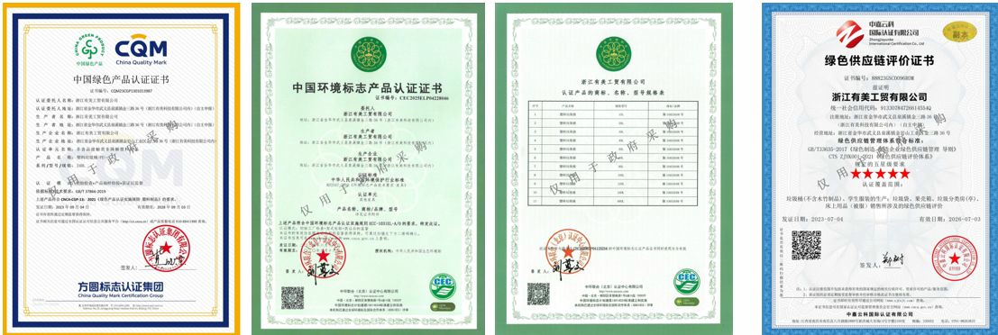 有美工贸的塑料垃圾桶具有多项突出特点。首先,其全品类环卫容器及配套设施丰富多样,塑料垃圾桶涵盖10L - 660L全系列,可以满足不同场景的使用需求。无论是城市街道、社区角落还是商业场所,都能找到合适容量的垃圾桶。其次,旗下塑料制品采用国际先进注塑生产工艺,配备国内外知名品牌注塑设备及自动化生产线。这不仅保证了产品的生产效率,更确保了产品的质量稳定。严格执行ISO9001质量管理体系,建立了从原材料采购至成品出厂的全过程质量控制体系,使得产品耐用性强,能有效应对户外恶劣环境,解决了普通垃圾桶易老化、脆裂,更换频繁的问题。