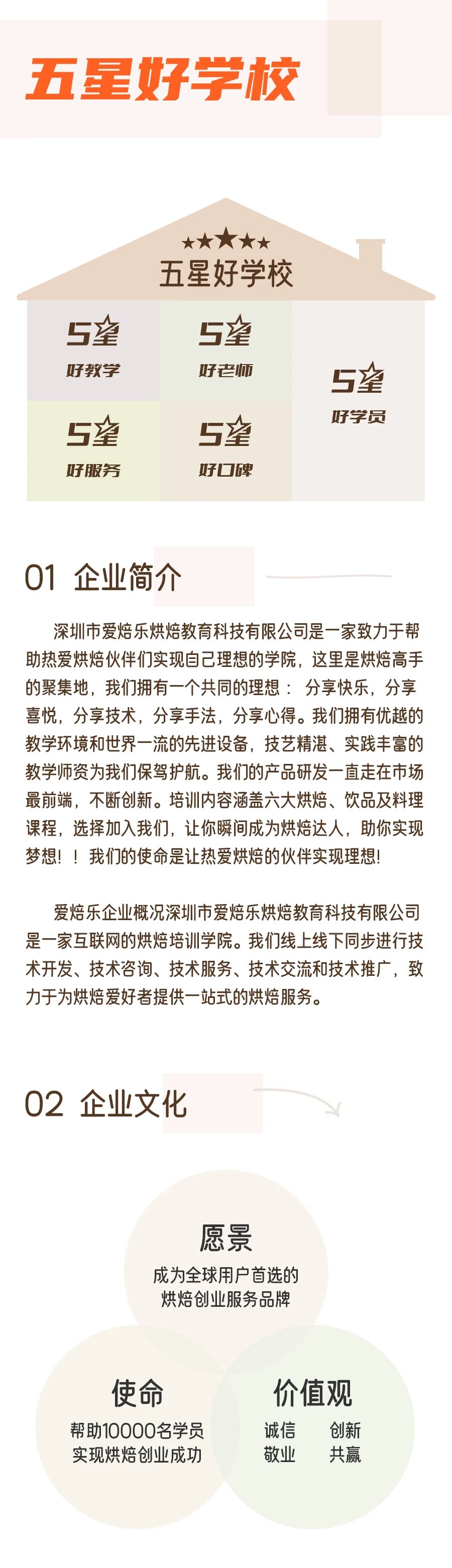 深圳市爱焙乐烘焙教育科技有限公司是一家致力于帮助热爱烘焙伙伴们实现自己理想的学院。它是一家互联网的烘焙培训学院,线上线下同步进行技术开发、技术咨询、技术服务、技术交流和技术推广,致力于为烘焙爱好者提供一站式的烘焙服务。这里是烘焙高手的聚集地,拥有优越的教学环境和先进设备,技艺精湛、实践丰富的教学师资为其保驾护航。产品研发一直走在市场前端,不断创新。选择加入爱焙乐,让你瞬间成为烘焙达人,助你实现梦想!