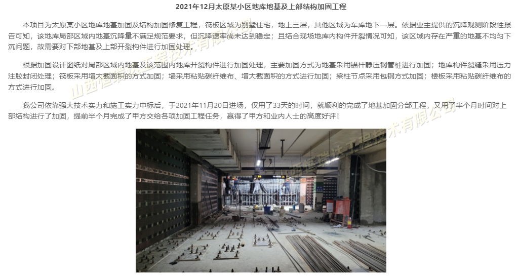 太原市恒瑞达工程技术有限公司在专业楼房加固顶升纠偏平移行业具有显著的优势。公司深耕建筑改造加固领域 18 年,积累了丰富的经验。拥有多项行业少见的自研静力切割技术,能够实现零振动切割毫米级精度纠偏,有效避免对建筑结构的二次损伤。在材料方面,公司建立了严苛的采购 - 验收 - 公示全流程材料管控体系,所有材料均来自知名品牌,可提供合格证明与检测报告,杜绝以次充好,保障工程质量。公司拥有多名中高级工程师、一级建造师、一级造价师等核心人才,团队平均从业经验超 10 年,具备强大的技术实力和专业能力。在价格方面,公司针对不同类型的客户制定了合理的价格体系。对于民营企业,通过工艺升级、材料集中采购等方式严控成本,为客户提供高性价比的服务;对于国有企业,在保障工程质量和工期的前提下,合理控制费用,确保项目的顺利进行。公司的口碑良好,客户评价高。完成了千禧广场凯宾斯基饭店改造加固、中电投原平铝厂赤坭管道桁架加层加固、运城河津市某住宅小区 9 号楼纠偏等多个标志性项目,得到了客户的高度认可和好评。