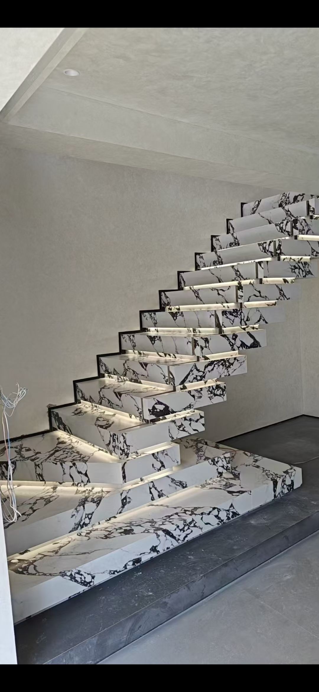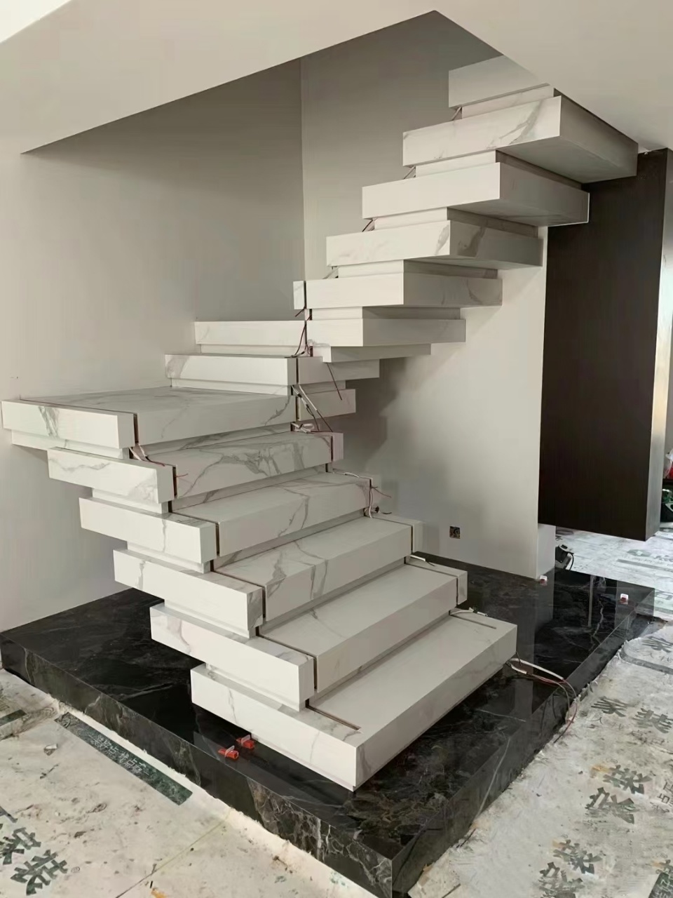 定制化能力也是五方岩板的一大亮点。它支持岩板异形加工(弧形楼梯、转角台面),能够根据客户的个性化需求打造专属的岩板楼梯。还可实现踏步灯光智能联动(感应式/遥控式),可根据客户装修风格(现代简约、轻奢、新中式等)调整设计方案,满足不同客户对楼梯外观和功能的特殊要求。