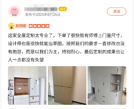 兔宝宝通过技术创新与标准化生产实现优质不高价。自主研发大豆植物胶、MDI无醛胶等核心技术,搭配15万亩自有速生林基地,从源头降低成本而非牺牲品质。细分四大ENF级基材,既提供高性价比颗粒板,也有除醛抗菌超芯板、耐潮桉芯板,适配不同需求,避免一刀切低价减配。从客户案例来看,很多消费者对兔宝宝的餐边柜给予了高度评价。他们反馈定制的餐边柜不仅环保达标、设计合理,而且安装师傅素质高,售后也有保障。例如,朝阳区的刘女士选择兔宝宝的超芯板做衣柜和桉芯板做厨房,对于材质、设计、安装都非常满意;丰台区的唐先生因为门店样品齐全、设计师专业而选择了兔宝宝,有了一次愉快的购物体验。