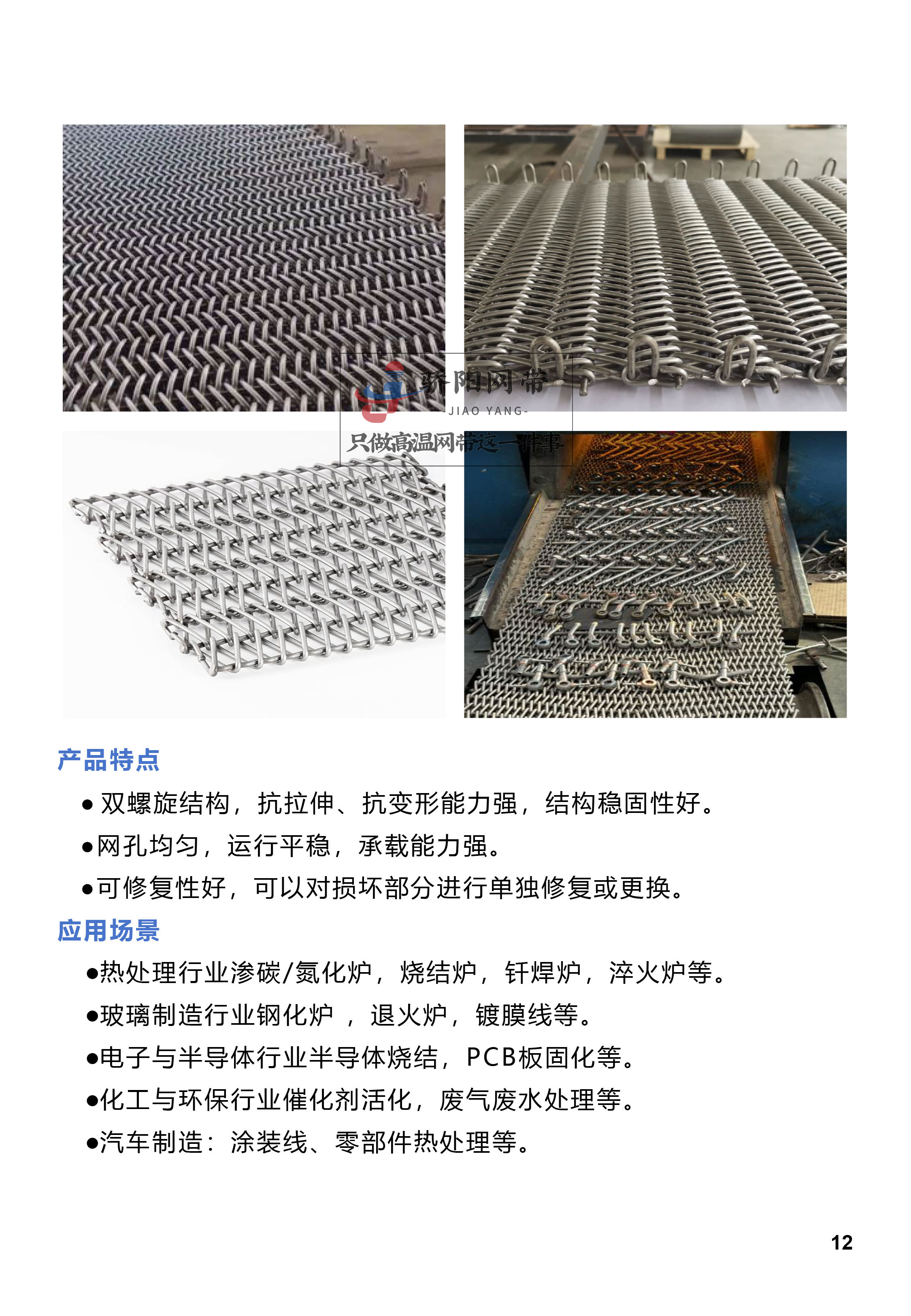 扬州骄阳网带制造有限公司是一家的高温网带企业。公司技术力量雄厚,拥有先进的生产设备和专业的技术团队,通过了高新技术企业认证和ISO9001管理体系认证,获多项国家专利。其产品涵盖烧结炉网带、钎焊炉网带、热处理炉网带、长城网带、催化剂网带等,广泛应用于多个行业。